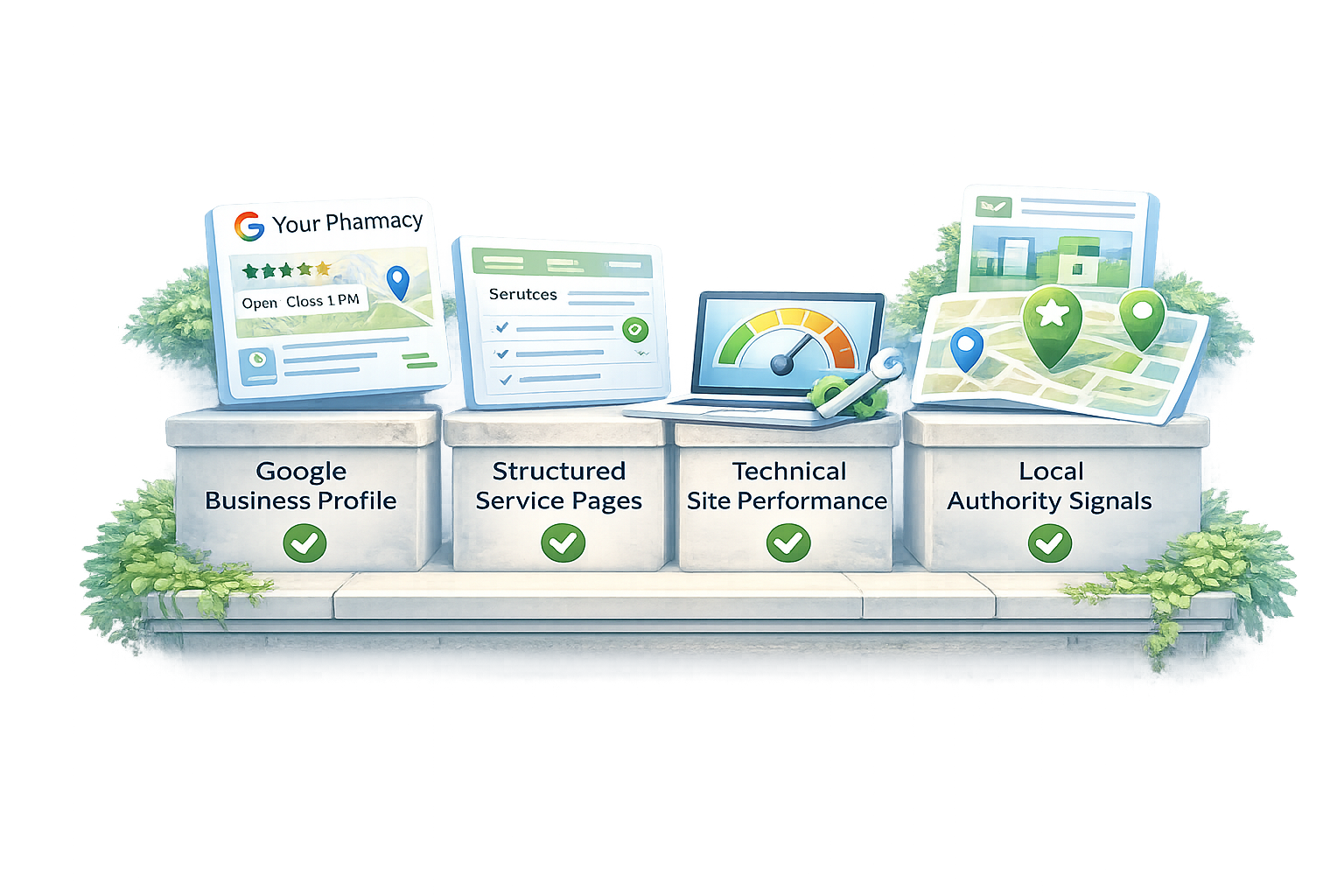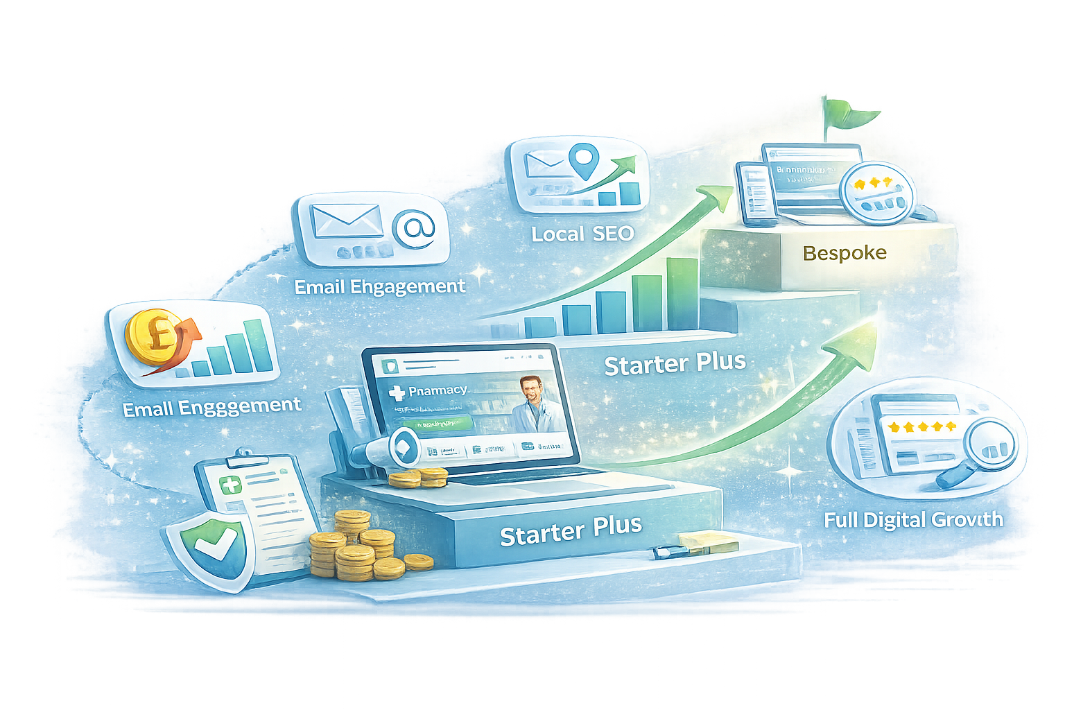 We provide structured digital infrastructure that strengthens your pharmacy’s visibility, credibility and patient engagement — delivered in a clear, affordable model designed specifically for UK community pharmacies.