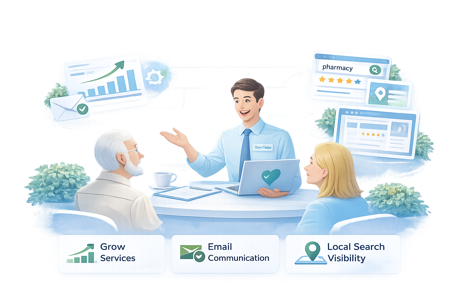 Patients expect to find clear, trustworthy information before they visit or contact a pharmacy. Yet many pharmacies still operate with no website, outdated pages, or generic Gmail email addresses.